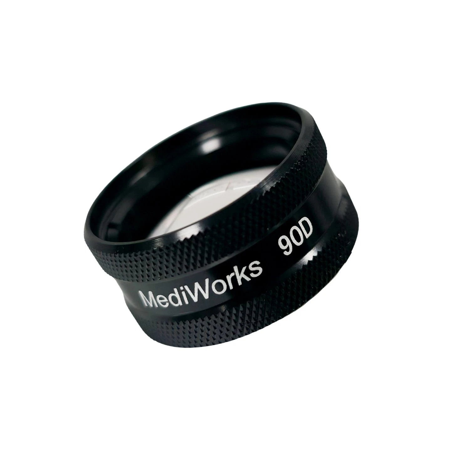 The MediWorks 90D lens is a popular choice for routine retinal examinations, offering an excellent balance of magnification and field of view. With a 0.76x magnification ratio and up to 89° field of view, it provides clear visualisation of the posterior pole and peripheral retina. The lightweight design and 7 mm working distance make it comfortable and efficient to use during slit-lamp fundus assessments.