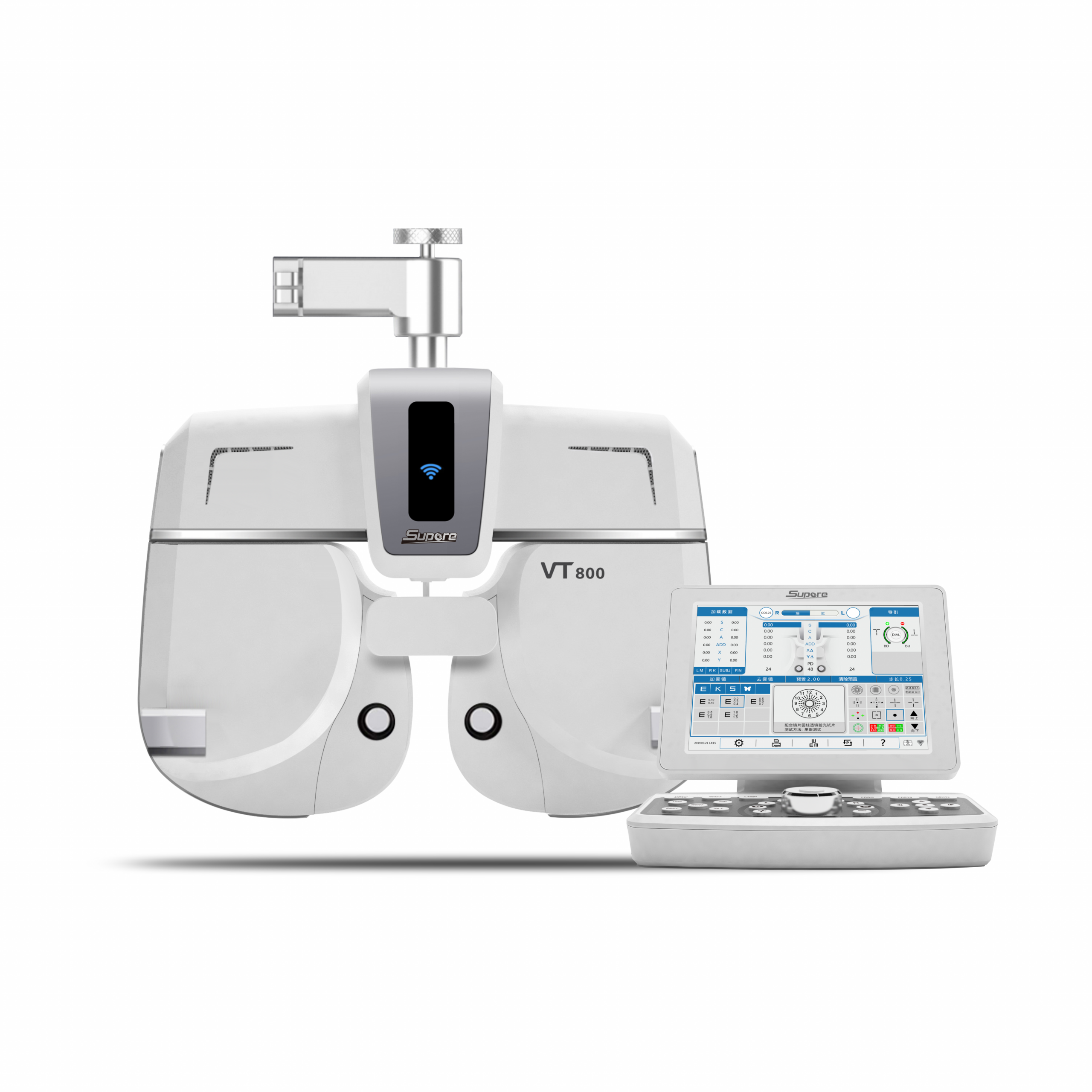 The Supore VT-800 phoropter is an advanced refractor that simplifies the eye examination process with precision and user-friendly features. Its intuitive interface and sleek, ergonomic design make it suitable for practices of any size. With rapid lens switching, customizable test sequences, and built-in visual acuity charts, the VT-800 ensures accurate and efficient refractions. Moreover, it integrates seamlessly with other diagnostic tools, enhancing workflow and patient care. Ideal for modern ophthalmology and optometry practices, the VT-800 represents the latest in refraction technology.
