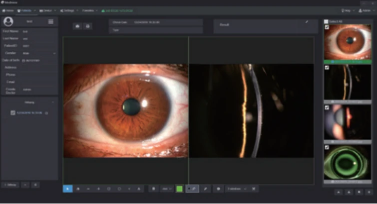 Clinicians can measure the pathology area with our powerful software tools and change the contrast and brightness of the images. Clinicians can also compare several images at one time to analyze the symptoms and pathology.