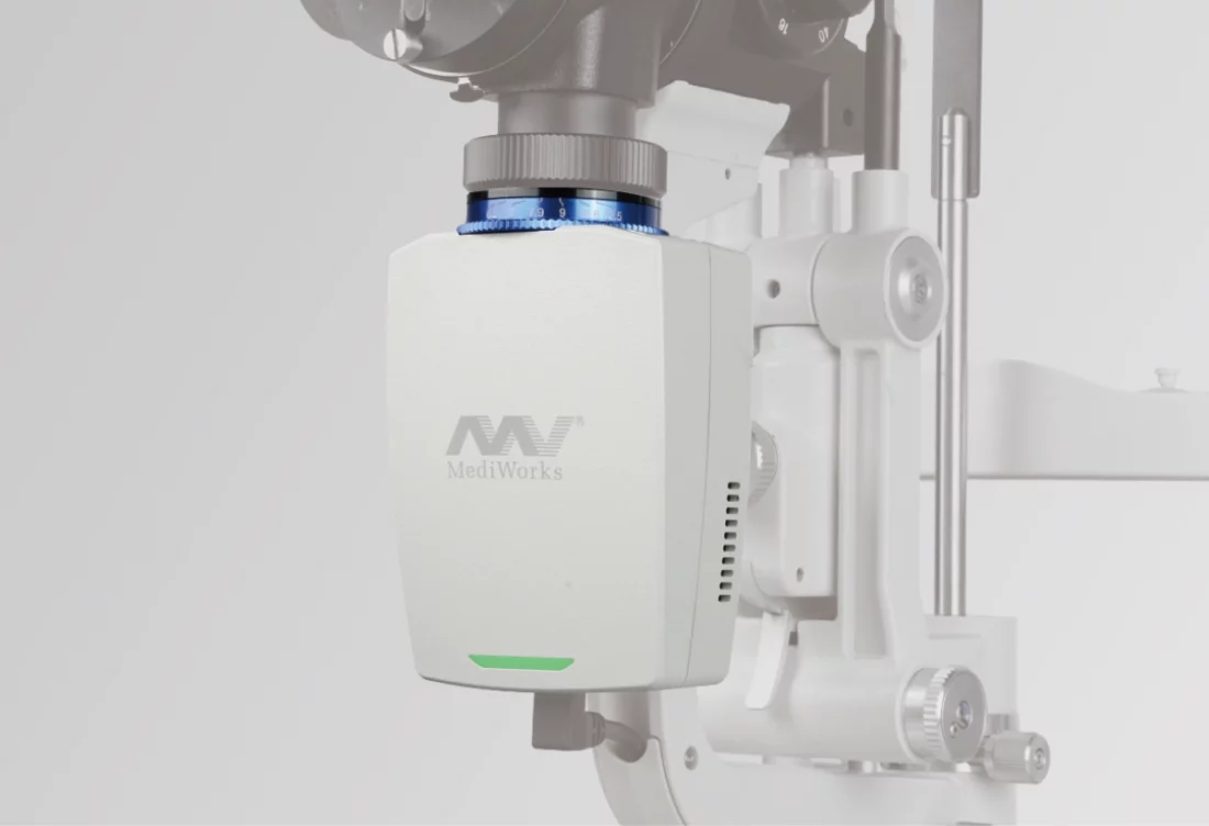 With a built-in yellow filter, doctors can accurately analyze eye surface damage and inflammation images.
