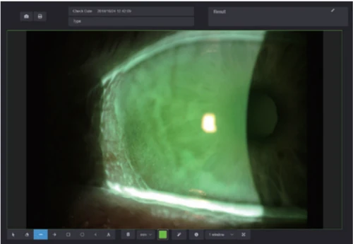 Doctors can obtain tear meniscus height by using measuring function in the Mediview softwarae, and effectively evaluate tear meniscus height.
