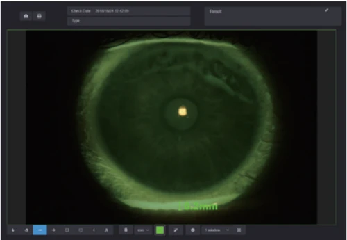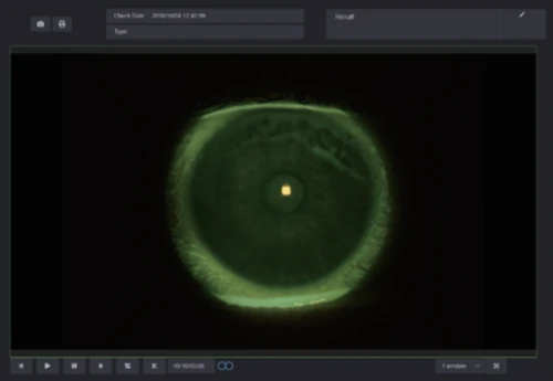The optometrists can capture and record high resolution fluorescein images of lens fitting and real-time video without a recording time limit. By comparing the different lens fitting effects, the optometrist can show and educate patients which lens is most suitable for them.
